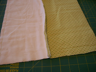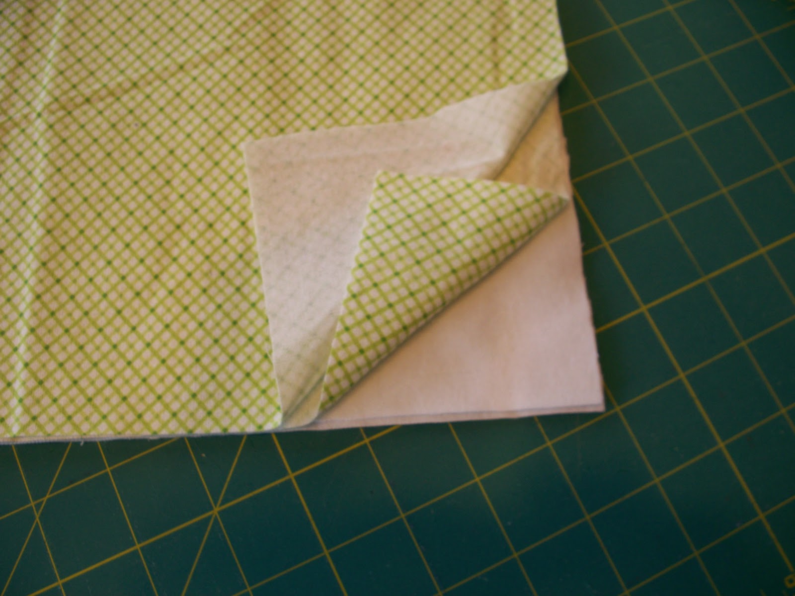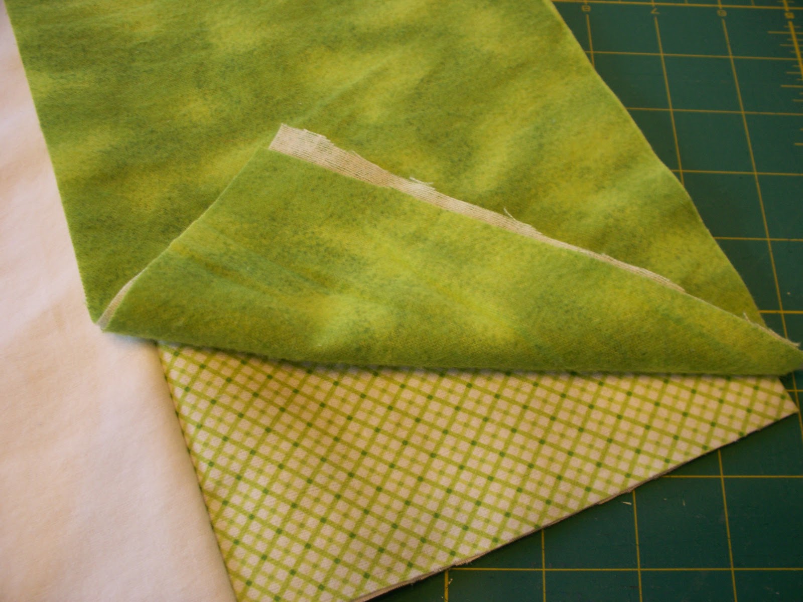 Then flip over, place two pieces of your third fabric (wrong sides together) on top of your second fabric and sew.