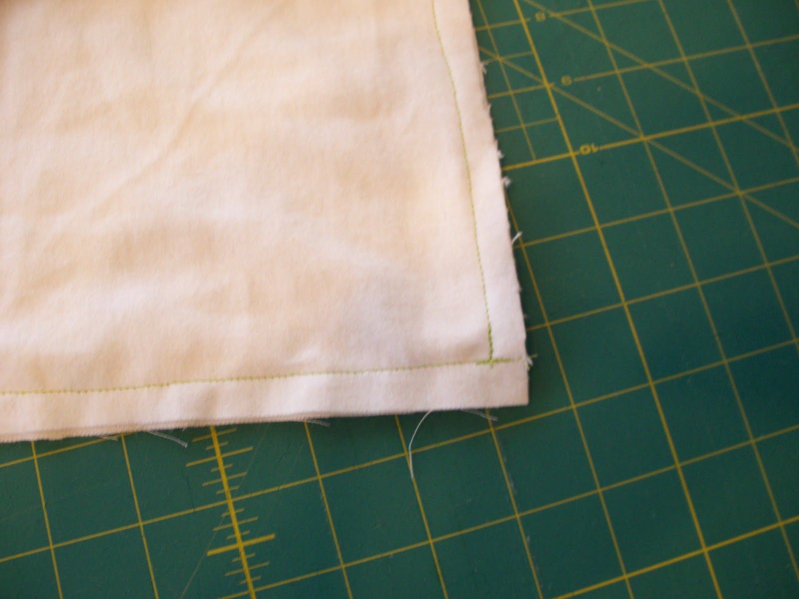 Now we start sewing. Always sew everything with wrong sides together and with 1/2 inch seam allowance.
