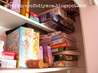 What a great idea to lay them on their sides! So simple but saves a lot of headache when everyone wants to play the one on the bottom of the pile. Your cabinet is really cute. Megan