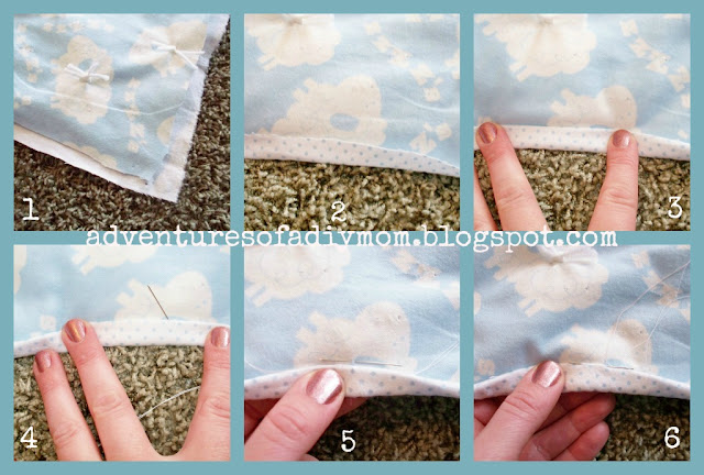 Continue all the way around the blanket. It took me a couple hours to bind a small baby blanket.