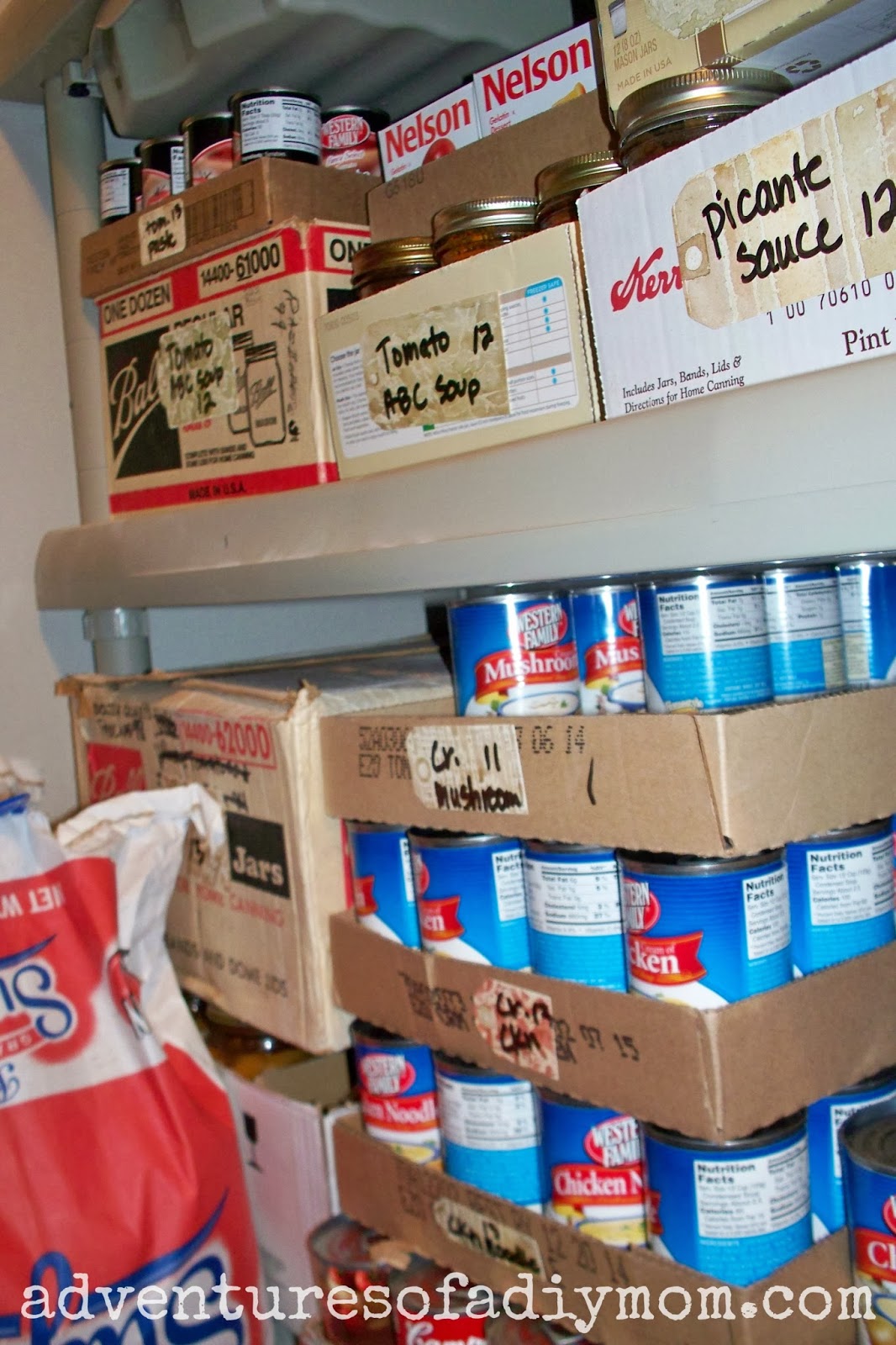 I even labeled the store bought canned food even though I won't be keeping those boxes. Sometimes when I send the kids down to look they can't find things. I'm hoping this will help.
