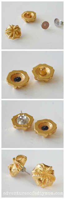 My mom gave me several tins of old buttons. Most were regular buttons, but when I saw these gold ones I knew they would make great earrings.