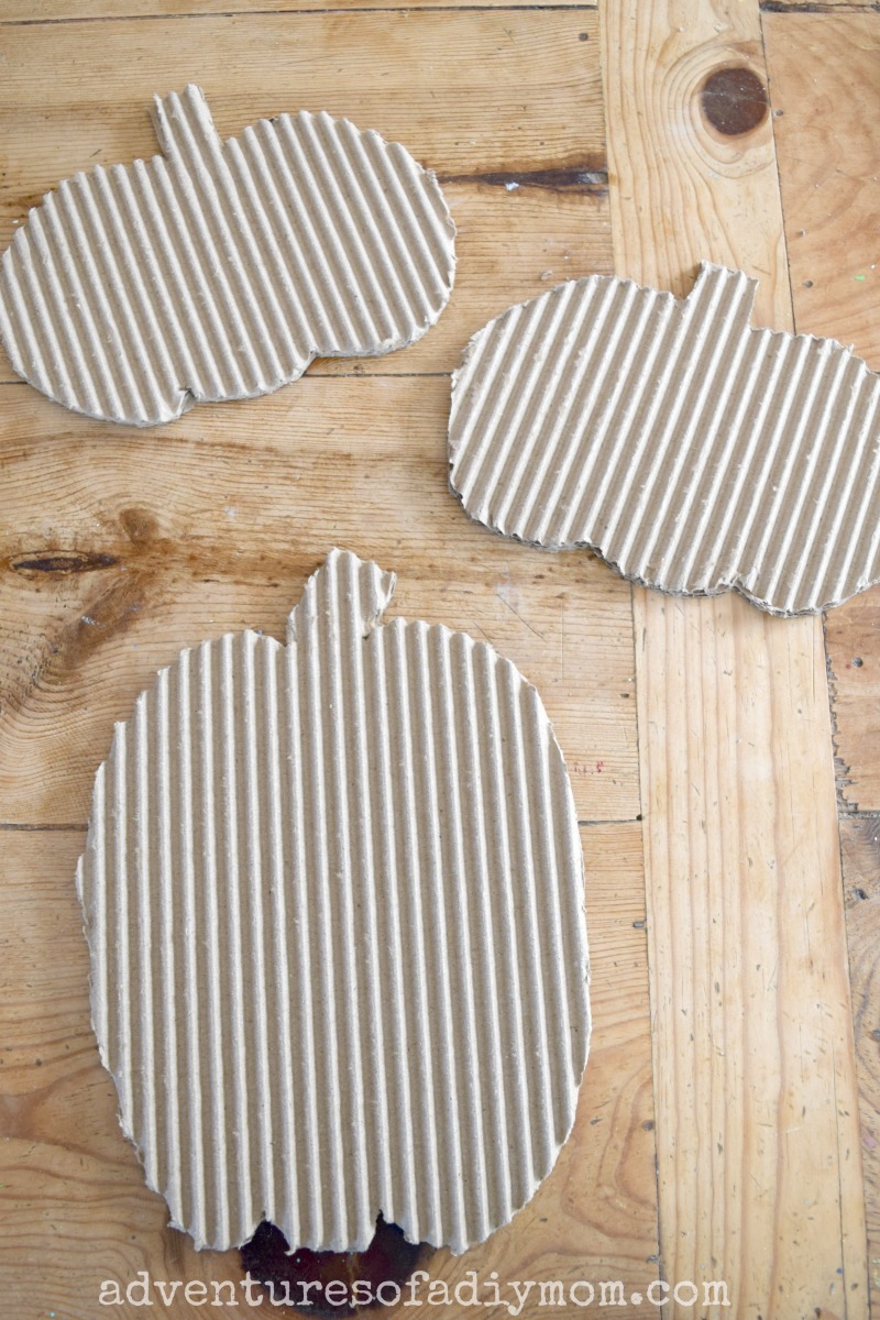 Trace the pumpkins onto a piece of thick cardboard. Cut them out. I found that the best way to cut them was with a serrated knife.